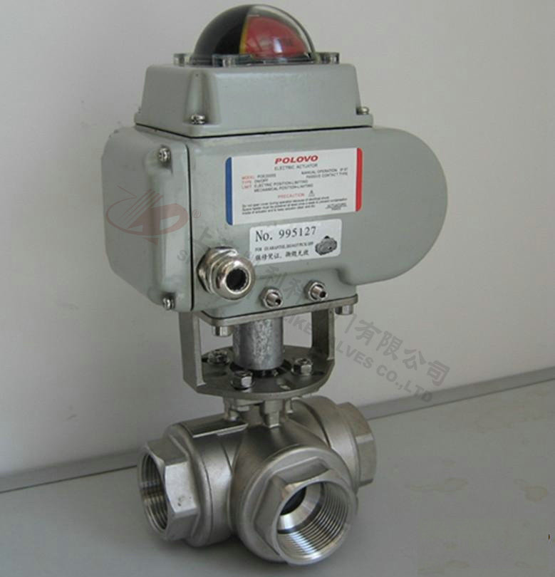電動三通球閥分L型和T型,介質(zhì)流通方向見下圖。L型電動三通球閥適用于介質(zhì)流向的切換,能使相互垂直的兩個通道連通:T型電動三通球閥適用于介質(zhì)的分流、合流或流向 切換,T型孔道可以使三個通道互相連通或使其中兩個通道連通,電動三通球閥一般采用三個閥座結(jié)構(gòu),亦可根據(jù)用戶要求采用四閥座結(jié)構(gòu)。