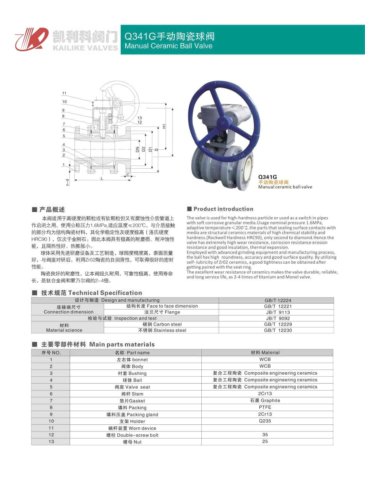 陶瓷球閥本閥適用于高硬度的顆粒或有軟顆粒但又有腐蝕性介質管道上作啟閉之用。使用公稱壓力1.6MPa,適應溫度≤200℃。與介質接觸的部分均為結構陶瓷材料,其化學穩(wěn)定性及硬度極高(洛氏硬度HRC90),僅次于金剛石。因此本閥具有極高的耐磨損、耐沖蝕性能,且隔熱性好、熱膨脹小。