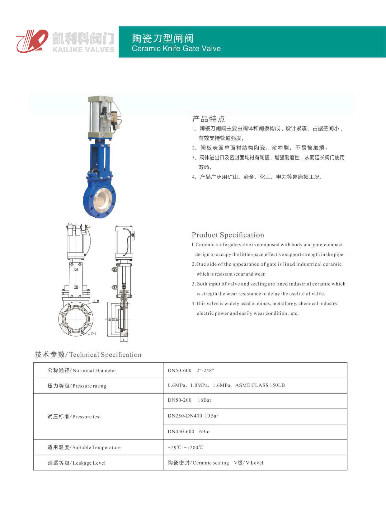 1、陶瓷刀閘閥主要由閥體和閘板構成,設計緊湊、占據空間小,有效支持管道強度。